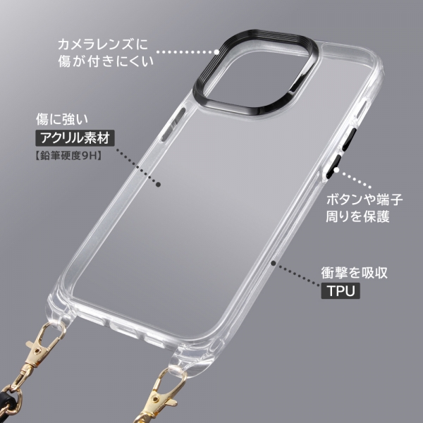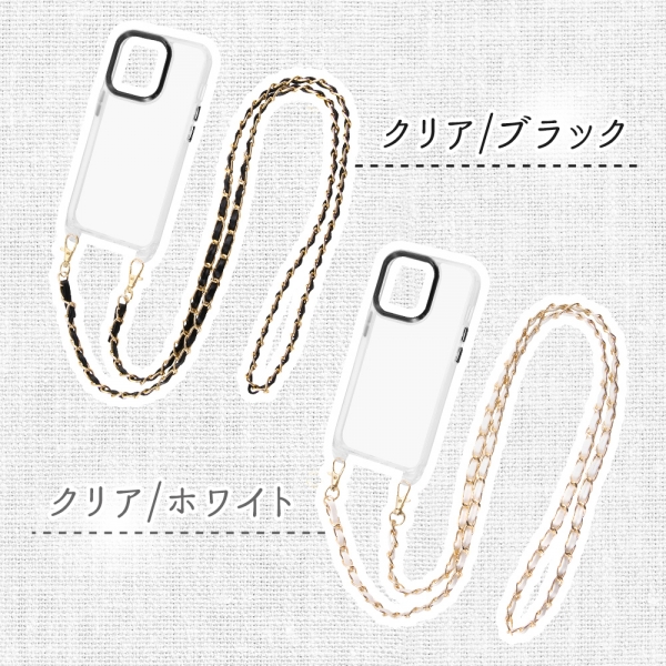 ハイブリッドケース ショルダーストラップ付/クリア/ホワイト