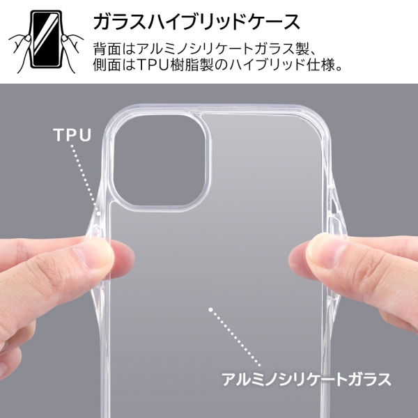 側面は柔らかなハイブリッド素材。傷に強いガラス素材。衝撃をやわらげる四つ角のエアクッション構造 。。側面は密着痕が出にくいマイクロドット加工。