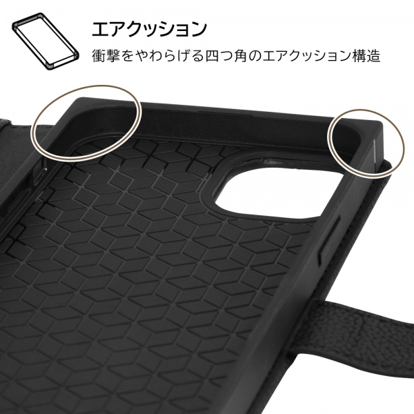 耐衝撃 手帳型レザーケース KAKU Ring/ブラック