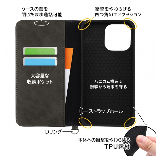 耐衝撃 手帳型レザーケース Noble/グレー/ブラック