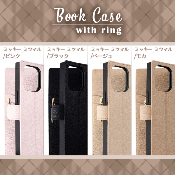 耐衝撃 手帳型レザーケース KAKU Ring/ミッキー_ミツマル/ブラック