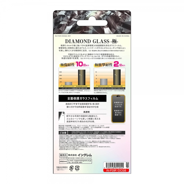 ダイヤモンドガラスフィルム 10H 全面保護 光沢/ブラック