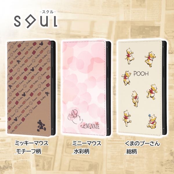耐衝撃 徹底保護 手帳型レザーケース Squl/ミニーマウス_水彩柄