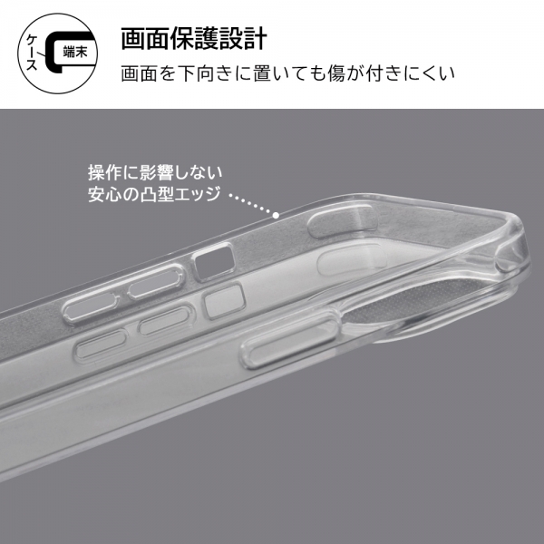 傷が付きにくく透明感が長持ち×衝撃を吸収し端末を保護。カメラレンズに傷が付きにくい。鉛筆硬度2Hで傷に強い。衝撃をやわらげる四つ角のエアクッション構造 。ボタンや端子周りまで保護。