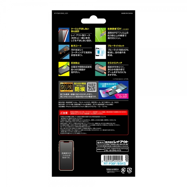 目の疲れを軽減/反射防止タイプ。レイ・アウト製ケース(別売)と一緒に使用しても干渉しない設計。通常のPETフィルムの約3倍以上の硬度で傷付きにくい。汚れをはじくコーティングで清潔な状態を保つ。ブルーライトを約40%軽減し、目の疲れを軽減。