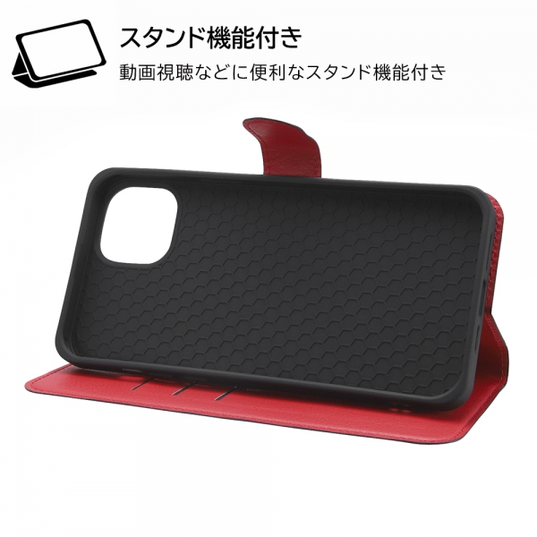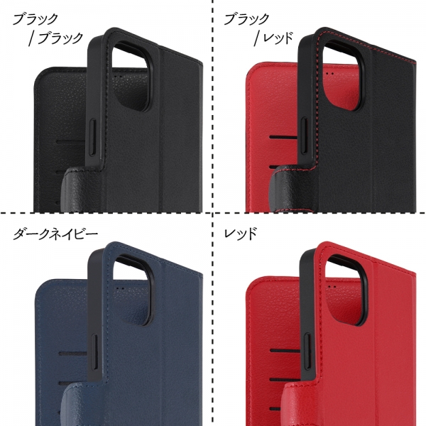 耐衝撃 手帳型レザーケース シンプル マグネット/ブラック/レッド