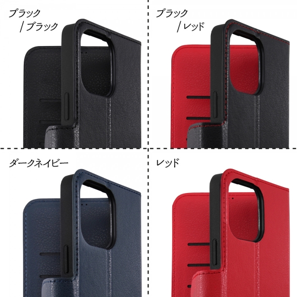 耐衝撃 手帳型レザーケース シンプル マグネット/ダークネイビー