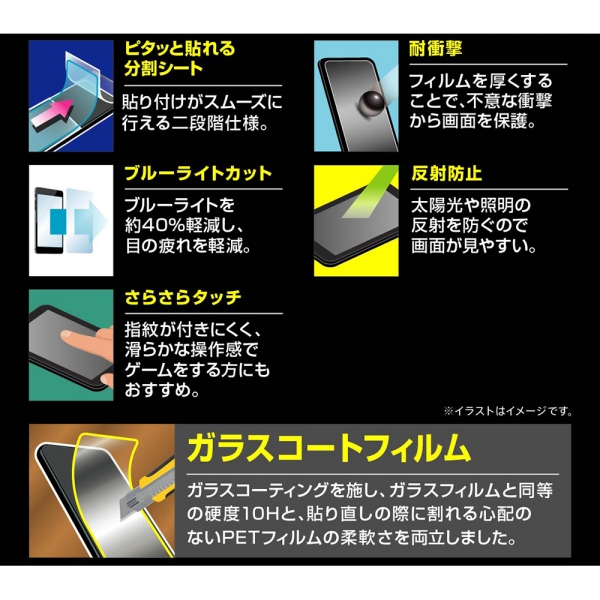 フィルム 10H ガラスコート 衝撃吸収 ブルーライトカット 反射防止