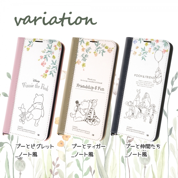 耐衝撃 手帳型レザーケース Noble/くまのプーさん/プーとピグレット_ノート風