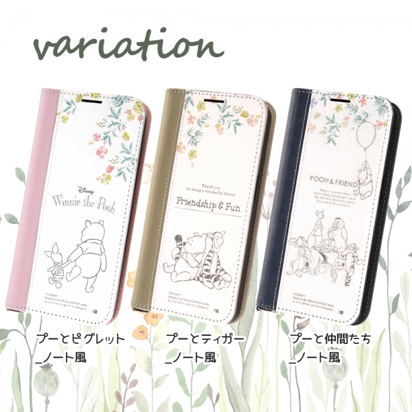耐衝撃 手帳型レザーケース Noble/くまのプーさん/プーと仲間たち_ノート風