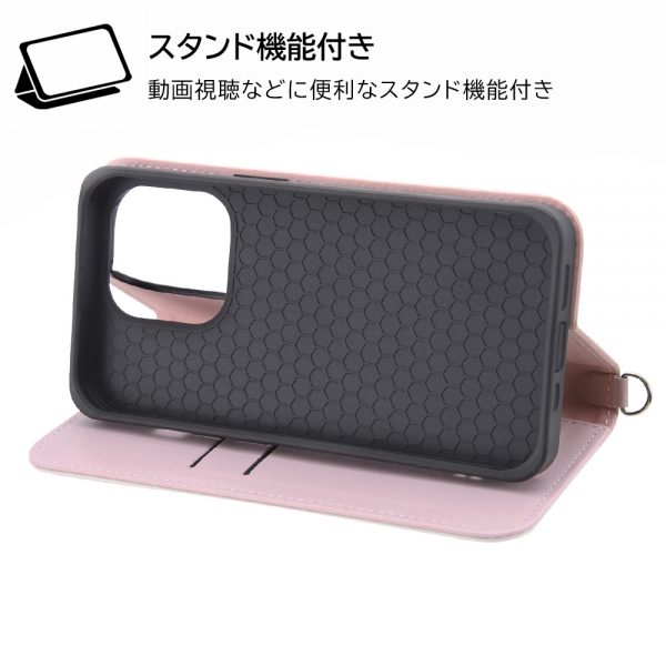 『くまのプーさん』のデザインが印刷されたバイカラーの手帳型iPhone 14 Pro用ケース。