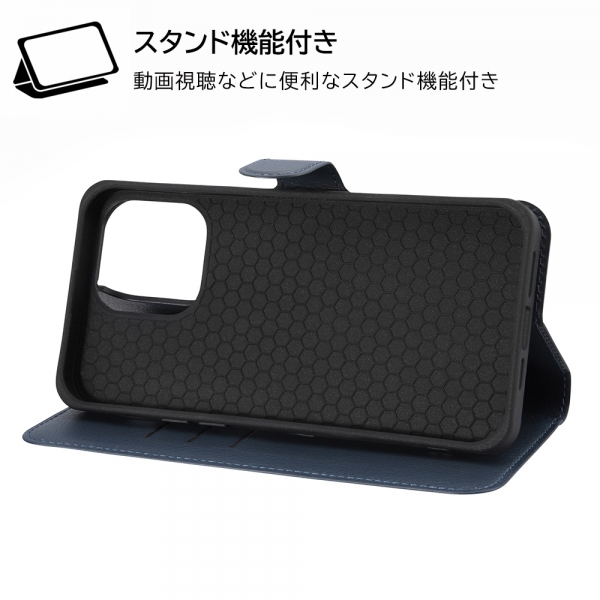 内側にはカードポケットの付いた薄くてスリムなレザーに、『ディズニーキャラクター』のデザインがプリントされた手帳型iPhone 14 Pro Max用ケース。マグネット式フリップが付いているのでケースの開閉が簡単に行えます。