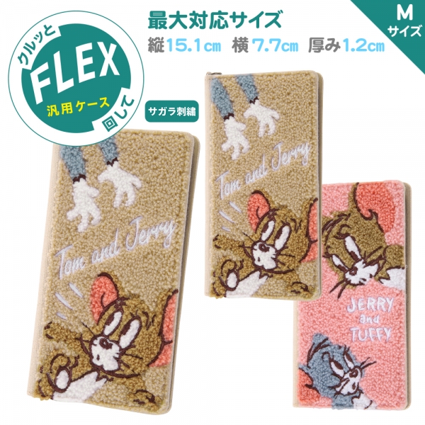 手帳型ケース FLEX サガラ刺繍 M/トムとジェリー/ジェリーとタフィー_モコモコ