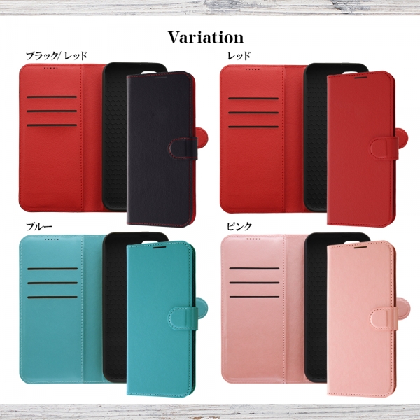 耐衝撃 手帳型レザーケース シンプル マグネット/レッド