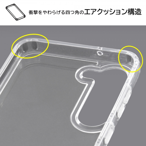 カメラレンズに傷が付きにくい。背面は傷に強い素材【鉛筆硬度2H】。衝撃をやわらげる四つ角のエアクッション構造 。ボタンや端子周りまで保護。