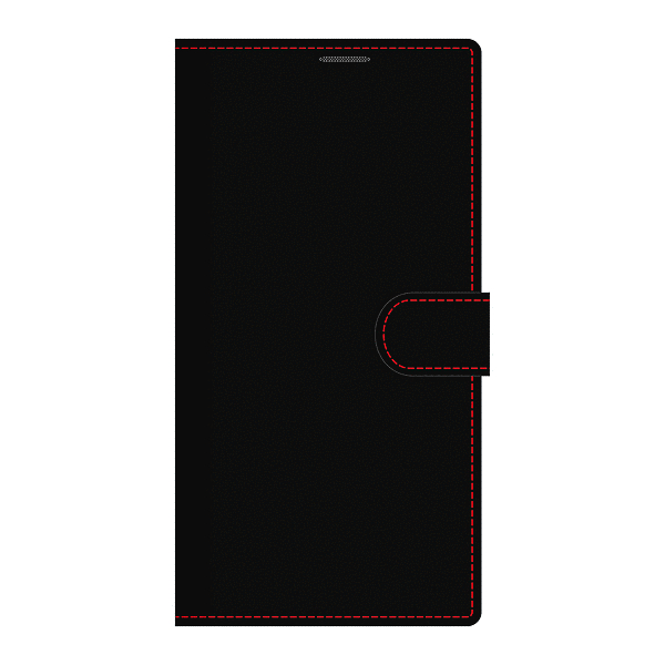 耐衝撃 手帳型レザーケース シンプル マグネット/ブラック/レッド