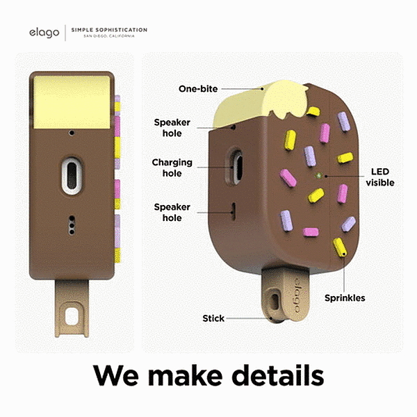 「かわいいアイスクリーム型」アイスクリームをモチーフにした、おしゃれでかわいいデザインケースです。「カラビナ付き」落下や紛失の軽減や、簡単に持ち運びできる、カラビナを付属しております。「落下衝撃を軽減」耐久性の高い厚みのあるシリコンを採用し、衝撃やスクラッチから本体をしっかり保護します。「高品質シリコン」高品質なシリコン素材を採用し、シンプルながらも高級感のある仕上がりになっています。「ケースを付けたまま充電可能」ケースを付けたまま、ワイヤレス充電やケーブル接続での充電が可能です。
