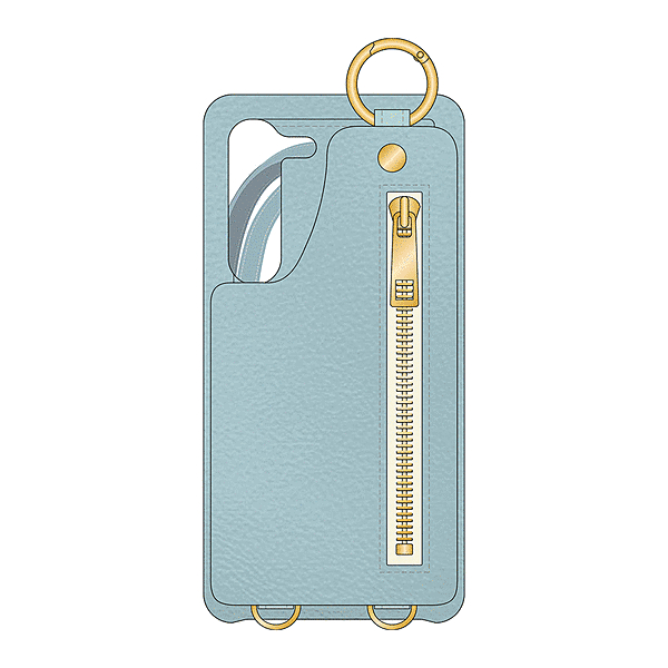 m1n1 ミニ ショルダー ネック ストラップ ポーチ付き オープンレザーケース/ライトブルー