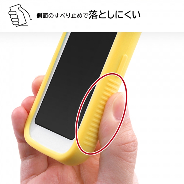 側面のすべり止めで落としにくい。ホコリがつきにくい。衝撃から端末を守るやわらかなシリコン素材。ボタンのすきまにもゴミが入りにくい。