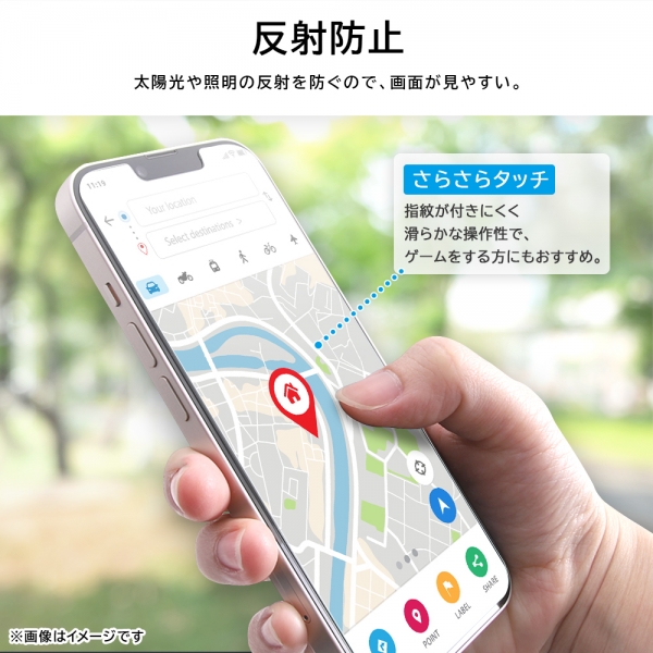 貼り付けがスムーズに行える二段階仕様。太陽光や照明の反射を防ぐので画面が見やすい。指紋が付きにくく、滑らかな操作感でゲームもしやすい。菌・ウイルスの数を減少させ、製品を清潔に保つ。