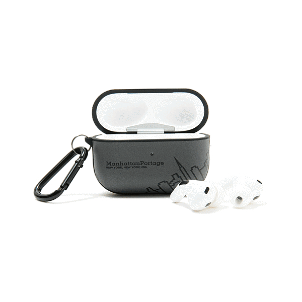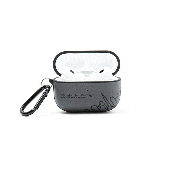 上質なPUレザーにManhattan Portageブランドの最もアイコニックであるNYCの街並みを彷彿させるスカイラインが斜め下方部から覗く立体感溢れるグラフィックが描かれたAirPods Proケース。ボディの表面中央にはLED インジケータが確認できるよう、ホールが開いています。Qi 規格のワイヤレス充電が前向き・後ろ向きのどちらでも可能ですが充電器の種類によってはご使用になれない場合があります。