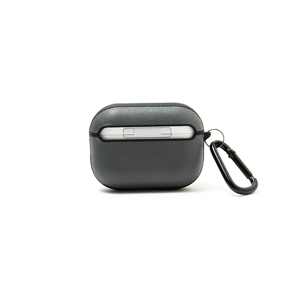 バッグや細身のベルトループ取り付けできるカラビナが付属されています。底面に充電用のホールやスピーカー用のホールが開いています。本製品はAirPods Pro第1世代、第2世代兼用です。