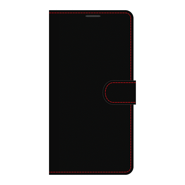 耐衝撃 手帳型レザーケース シンプル マグネット/ブラック/レッド