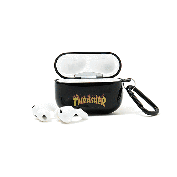 THRASHERブランドの最もアイコニックなブランドロゴを配したAirPods Pro(第2世代/第1世代兼用)ケース。付属のカラビナはバッグやベルトループに装着可能です。
