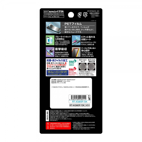 衝撃吸収 ブルーライトカット 反射防止 抗菌・抗ウイルス