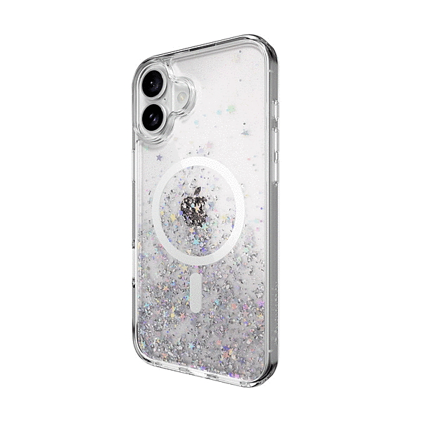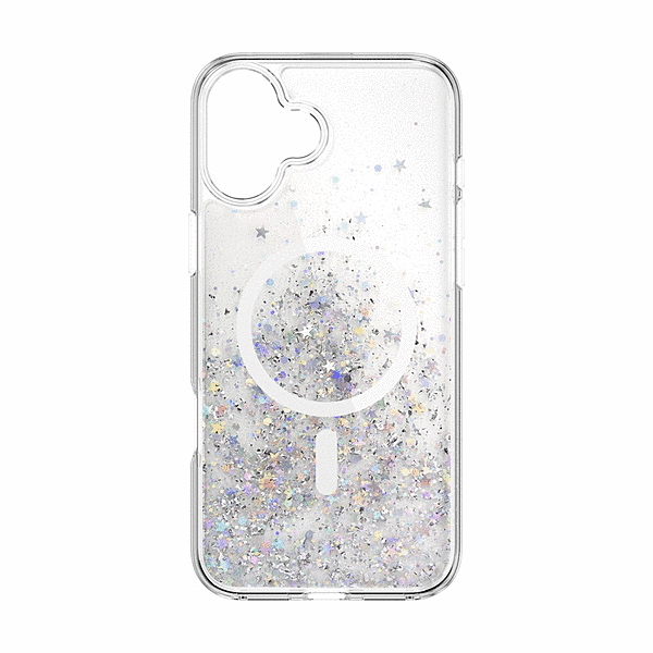 「マグネット搭載」Apple純正MagSafe充電器を含む対応アクセサリが付けられ、MagSafe規格に準じたワイヤレス充電が可能です。「大人かわいいデザイン」ケース背面に様々なカラーや形のラメ素材を閉じ込めた、おしゃれなデザインケースです。「キラキラケース」角度や照明によって異なる色合いが楽しめます。「ストラップホール付」ケース下部側面にはストラップホールがあり、お好きなストラップを装着することが可能です。「液晶・背面カメラを保護」デスク等に置いても液晶やカメラレンズが直接触れないよう、ケースを液晶画面・カメラより高めに設計しております。