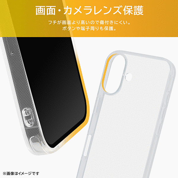 フチが高く画面やカメラが傷つきにくい。高い透明感、クリア長持ち。衝撃をやわらげるエアクッション構造。ボタンや端子周りまで精密に保護。ストラップホール付き。