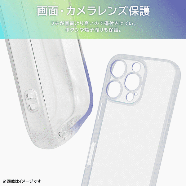 カメラ周りを極限まで保護する精密設計。高い透明感、クリア長持ち。衝撃をやわらげる全周囲クッション構造。ボタンや端子周りまで精密に保護。ストラップホール付き。