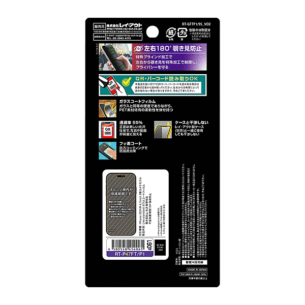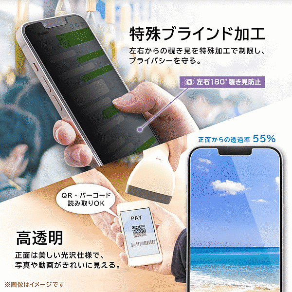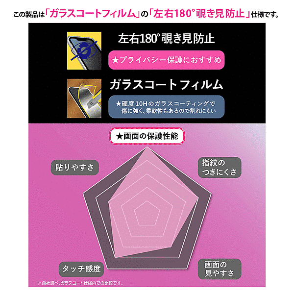 ガラスコートフィルム 覗き見防止 光沢 衝撃吸収 硬度10H 指紋防止