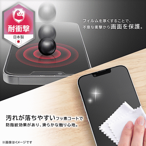 ガラスと同等の硬度でありながら、PET素材特有の柔軟性を併せ持つガラスコートフィルム。フィルムを厚くすることで、不意な衝撃から画面を保護。超防指紋効果で、滑らかな指すべりを実現。乾拭きで画面の汚れが落ちやすい。美しい光沢仕様で、高画質な写真や動画が綺麗に見える。左右からの覗き見を特殊加工で制限し、プライバシーを守ります。