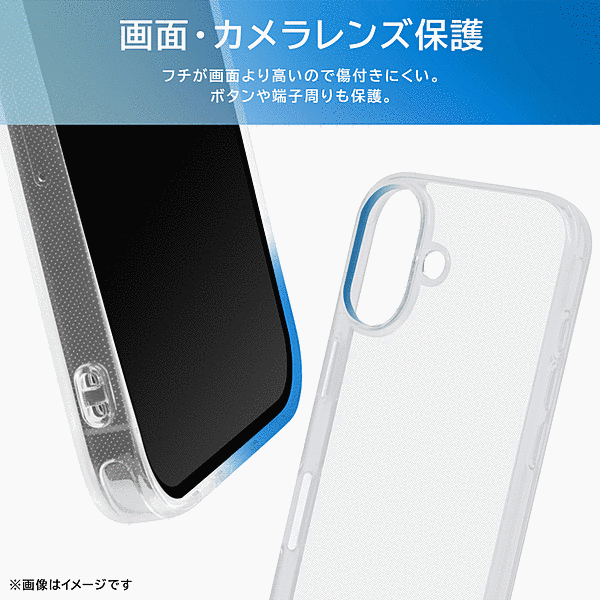 フチが高く画面やカメラが傷つきにくい。当社比2.5倍!背面は傷に強い素材【表面硬度5H】。衝撃をやわらげるエアクッション構造。ボタンや端子周りまで精密に保護。ストラップホール付き。
