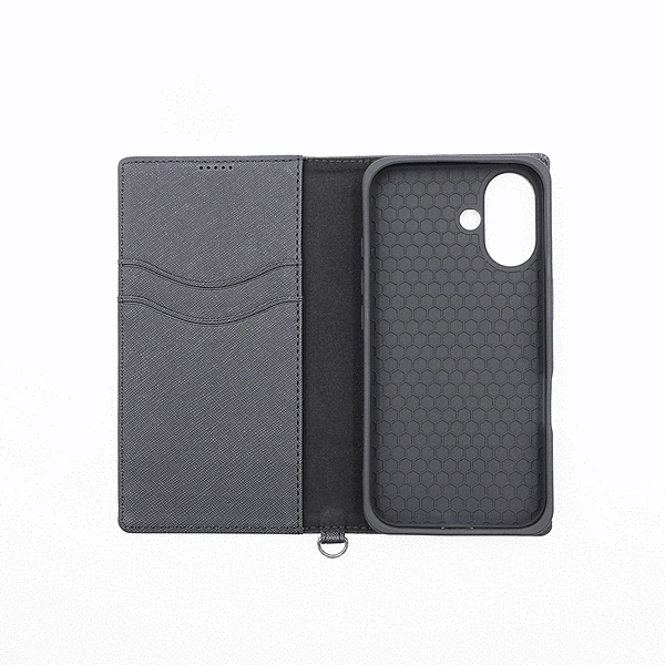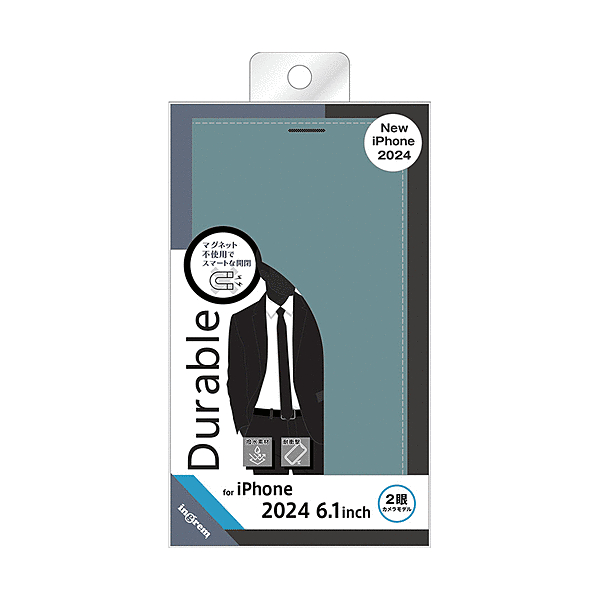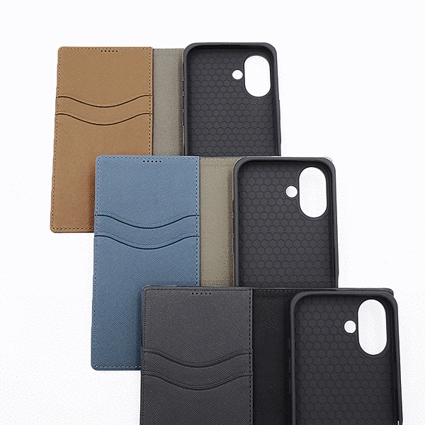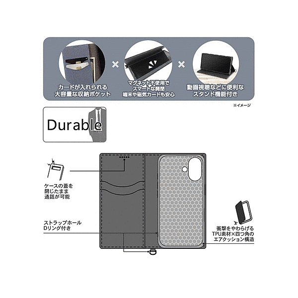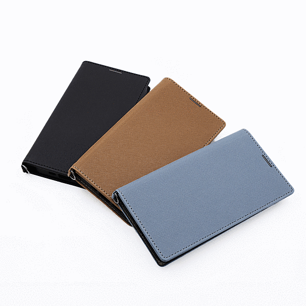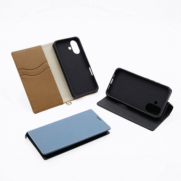 Durable 耐衝撃 マグネット不使用 シンプル スクエア 手帳型レザーケース/ブルー/ライトグレー