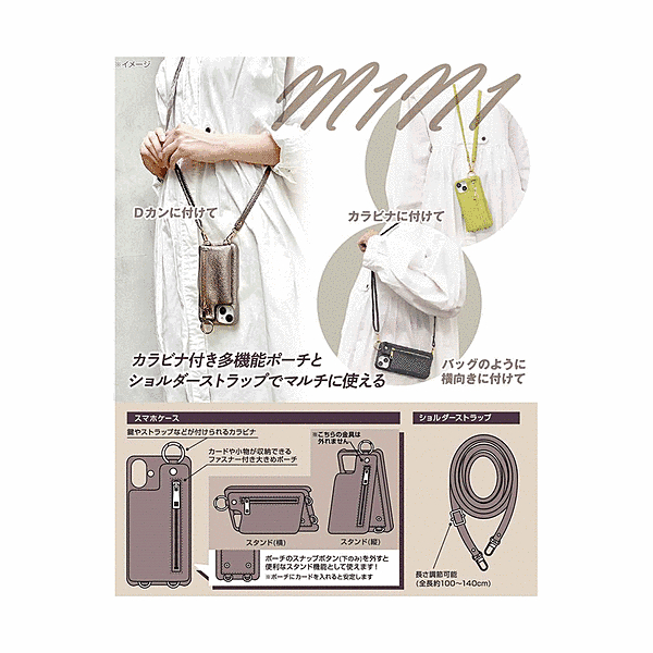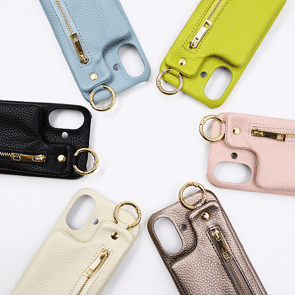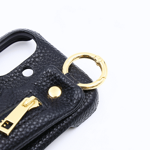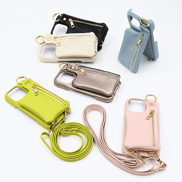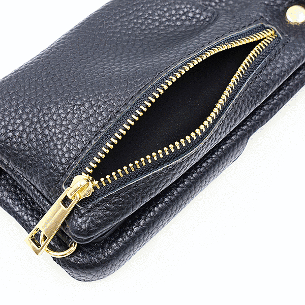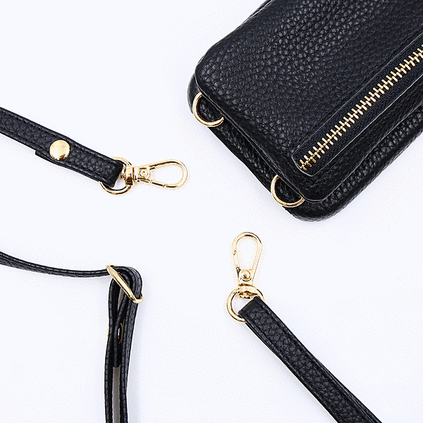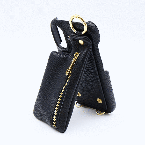 m1n1 ミニ ショルダー ネック ストラップ ポーチ付き オープンレザーケース/ブラック