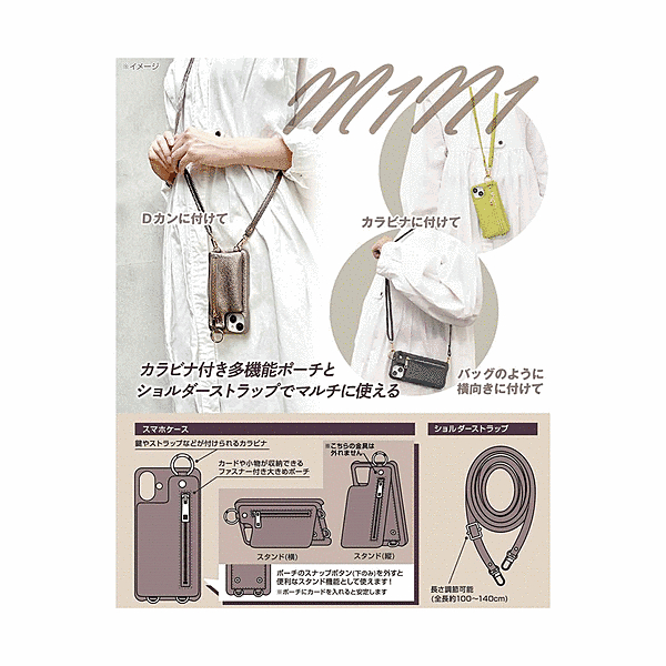 m1n1 ミニ ショルダー ネック ストラップ ポーチ付き オープンレザーケース/ブロンズ