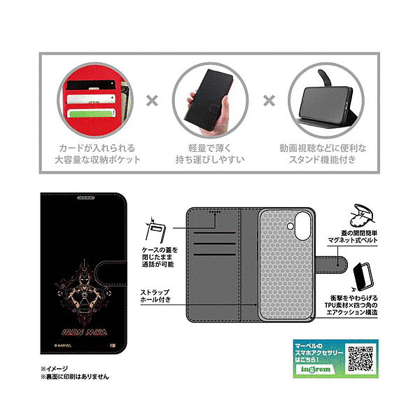 衝撃吸収 マグネットベルト シンプル 手帳型レザーケース/マーベル/アイアンマン_5