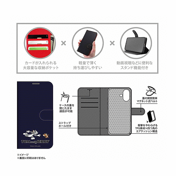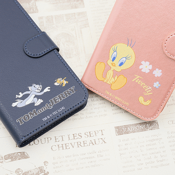 耐衝撃 手帳型レザーケース シンプルマグネット/トムとジェリー