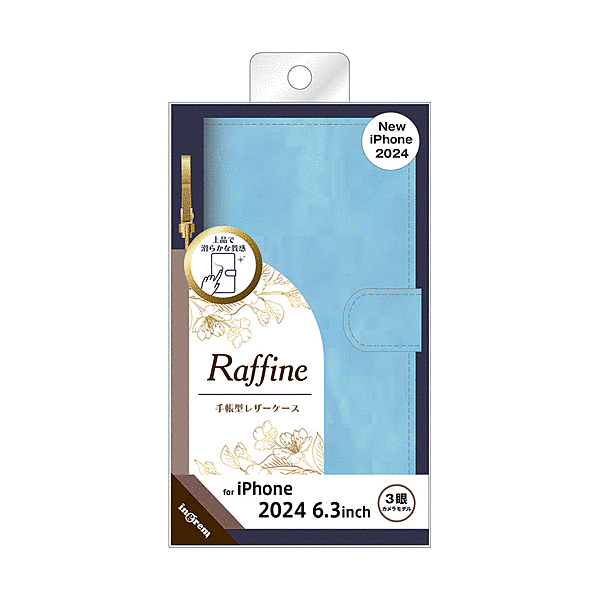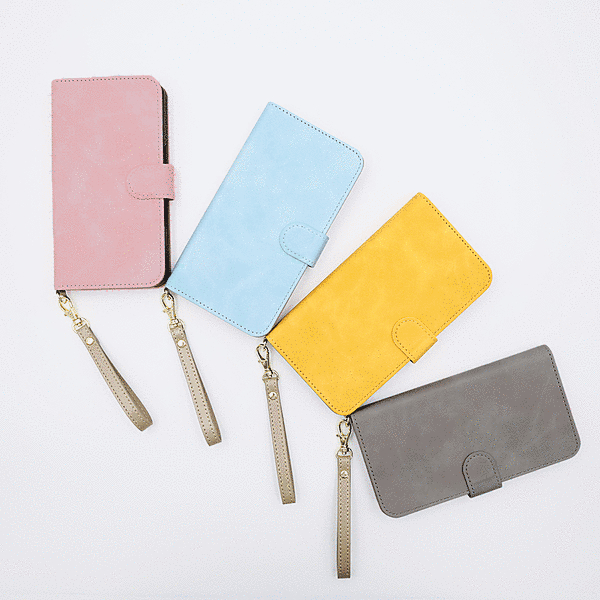 Raffine 耐衝撃 マグネットベルト ハンドストラップ付き さらさら ムラ染め 手帳型レザーケース/ブルー