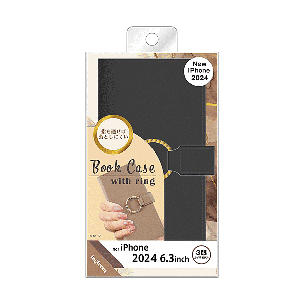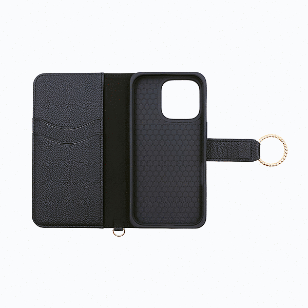 Ring 耐衝撃 マグネットベルト リング付き 手帳型レザーケース/ブラック