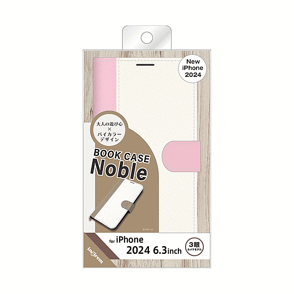 耐衝撃 手帳型レザーケース Noble/ホワイト/ピンク