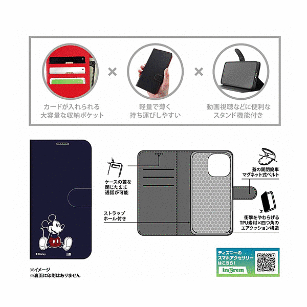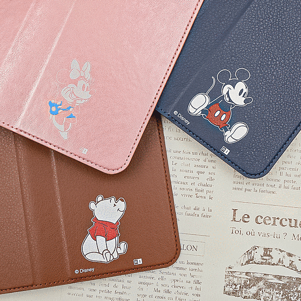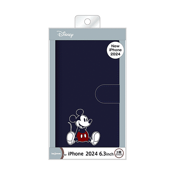 耐衝撃 手帳型レザーケース シンプルマグネット/ミッキーマウス_sitting