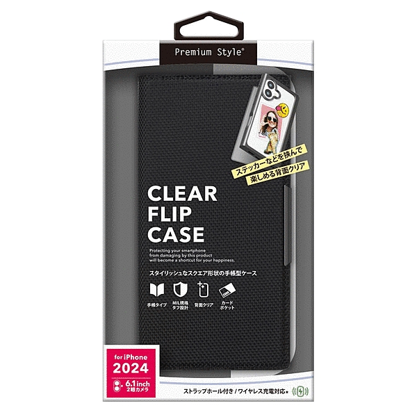 クリアフリップケース ナイロン ブラック