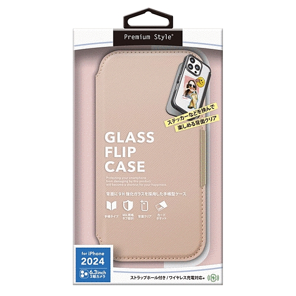 ガラスフリップケース サフィアーノ調 ピンク