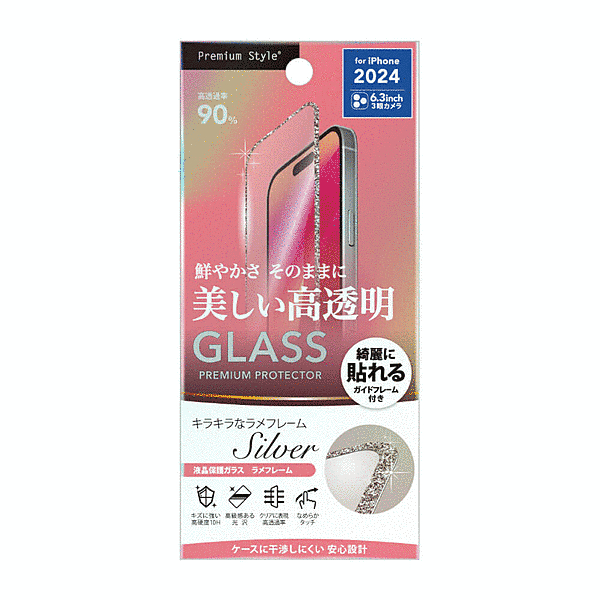 液晶全面保護ガラス ラメフレーム/シルバー/高透明