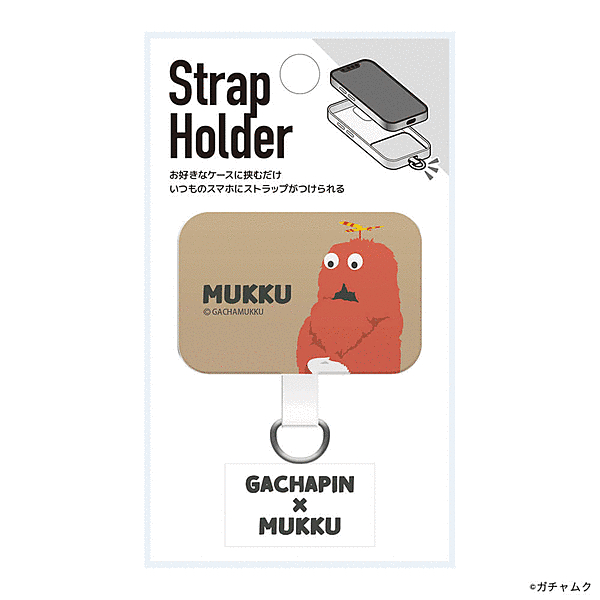 「PG-GXMSTH2MUK」は、「ガチャピン×ムック」デザインのストラップホルダーです。端末とケースの間にストラップホルダーを挟み込むだけで、ストラップホールを付加します。(※お手持ちのケースや充電口の形状によってはホルダーが収まらない場合があります。)端末やケースに貼り付けしないので、汚れずいつでも付け外しが可能です。(耐荷重:3kg)