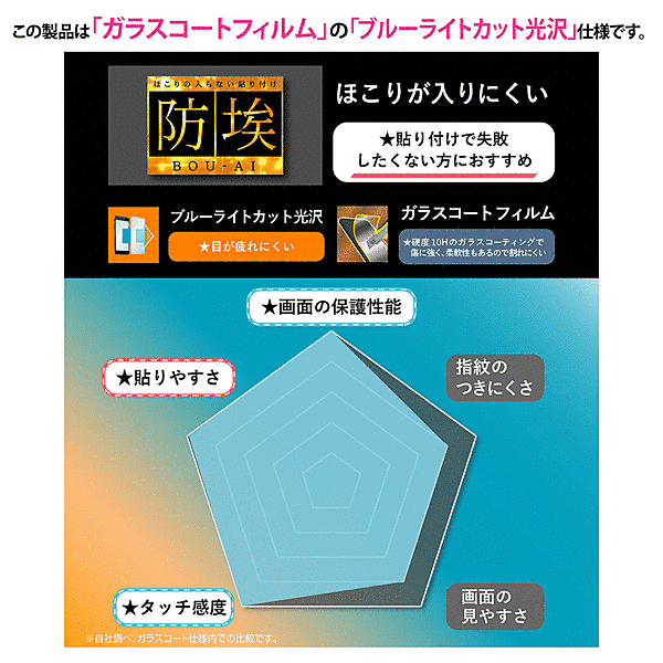 ガラスコートフィルム 防埃 ブルーライトカット 光沢 衝撃吸収 平面保護 硬度10H 指紋防止