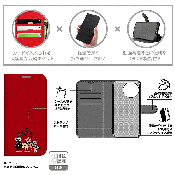 耐衝撃 手帳型レザーケース シンプルマグネット/ムーミン/リトルミイとお花_3
